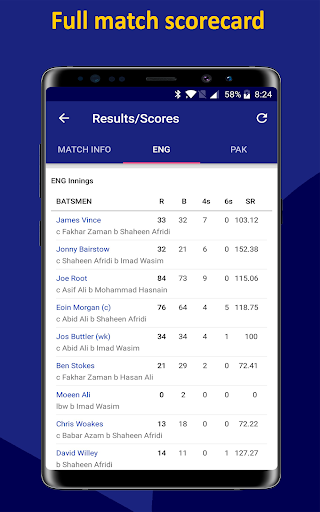 Live Score and full Scorecard updated live