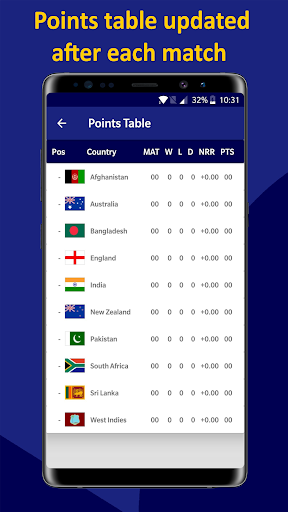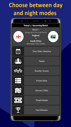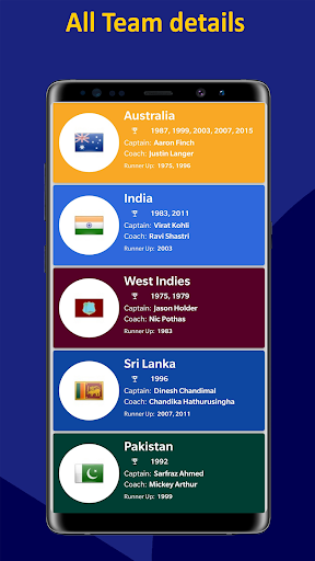 Excellent app. All information about cricket world cup is there. Nice design and offline schedule is there as well.