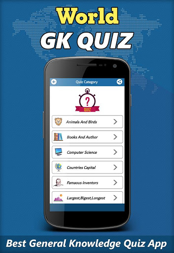 It's the best world general knowledge quiz book i have ever used. U can get knowledge of gk easily with one click. Features are awesome and gracious. Must install it and try it once. It's awesome