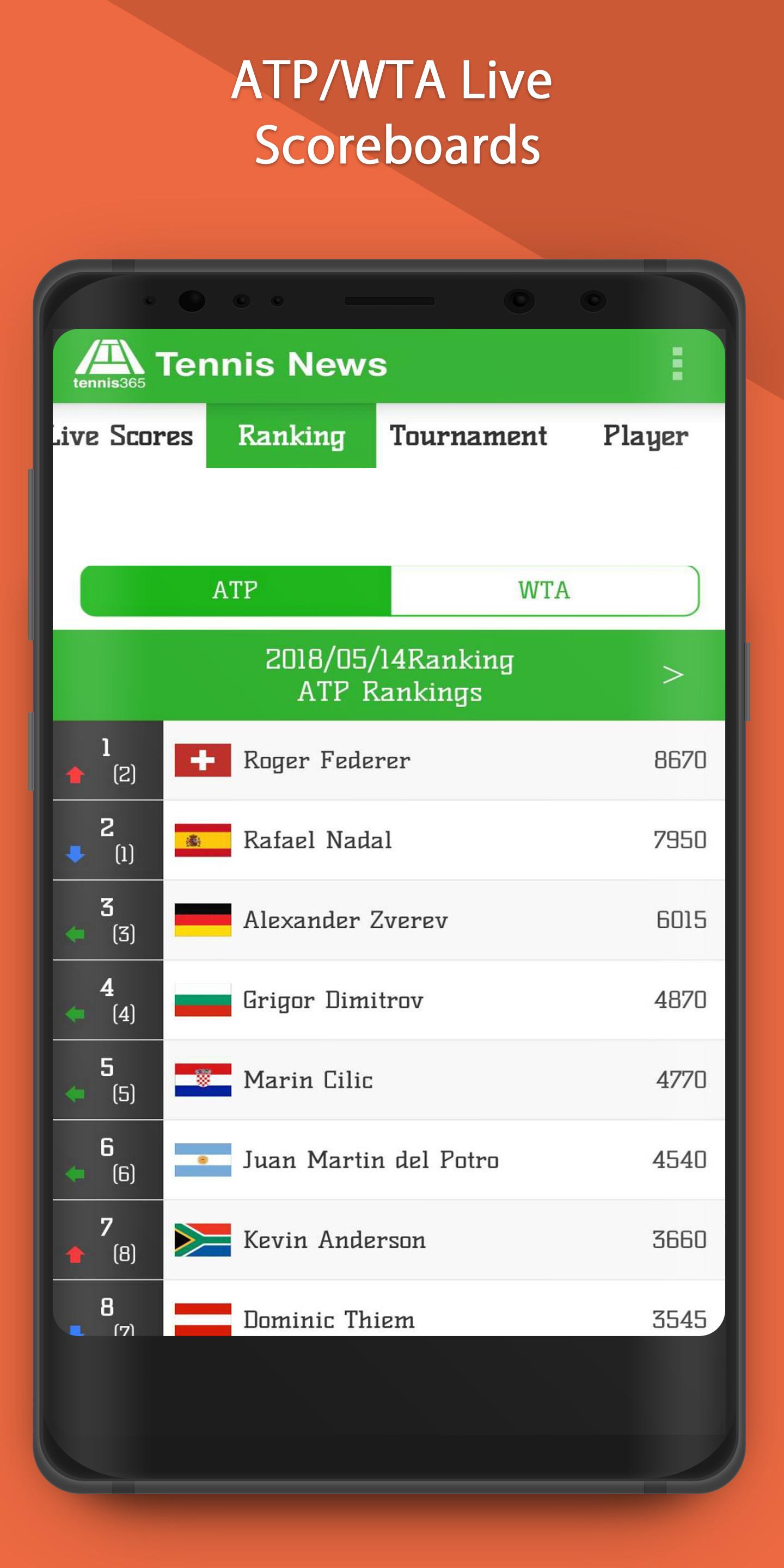 Tennis news 365 is an app for all fan of tennis. With this app follow all tournament around the world, check your player scores via the livescore and check the last rankings from ATP/ATP.