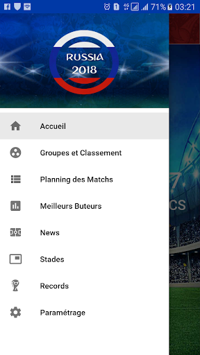 Application dedicated to World cup 2018 events organized in Russia 2018 :