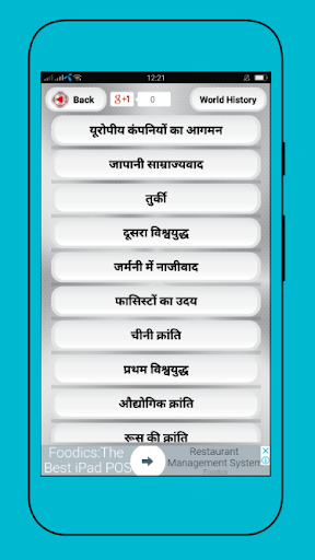 The history Gk seekers will get benefit through the world history Gk in hindi app. You ca get it from google play store. History Gk will give the real test of history by your searching . The people of hindi language can know world history in hindi. You also fill up your thirst of knowledge about Gk history geography of all world. World history seekers people also find their own searching choices. Our developers make this app so dynamically that one can easily learn about history general knowledge. Besides all facilities, you can also looked out history general knowledge app. The indian people also learn about