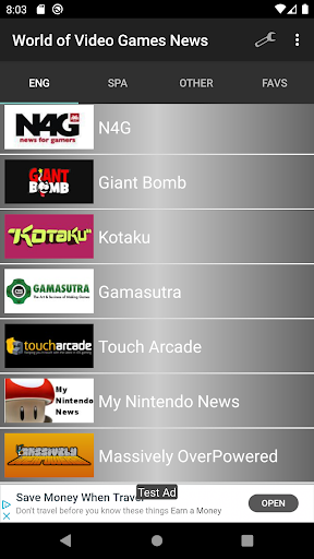 - English International: GameSpot,IGN,Destructoid,VG247,GameInformer,GamesRadar,EuroGamer,N4G,Giant Bomb,Kotaku,Gamasutra,Touch Arcade,My Nintendo News,Massively OverPowered,Nintendo Life,EGMNow,Operation Sports,Videogamer,Major Nelson,Blues News,Indie Game Reviewer,PC Gamer,Rock Paper Shotgun,Attack of the Fanboy,Siliconera,Xbox360Archievements,PSX Extreme,Metacritic,Shacknews,PlayStation LifeStyle,SlashGear,RPGamer,TrueArchievements,VgLeaks,Dualshockers,GamingBolt,God is a Geek,Game Rant,Dark Side of Gaming,Den of Geek,VGChartz,Playstation Blog,Strategy Informer,GTPlanet,MMORPG,Steam,Evil Avatar,RetroCollect,Daily Game,Pocket Gamer,Push Square,Metro GameCentral,Nintendo Everything,Escapist,Pokejungle,Polygon,Gamezebo,Metal Gear Informer,Nintendo Enthusiast.