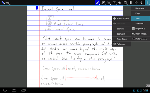 • reflow handwritten text with the insert space tool
