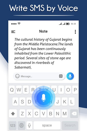 Powerful speech-enabled (voice-typing) notepad, designed to empower your ideas and creativity. Where you have to click the mic over and over again for long dictations, Write SMS by Voice will not stop even when you take longer breaks between sentences.