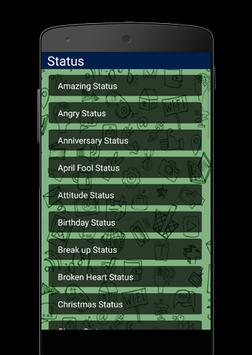 Attitude Status , Friendship Status , love status . Status for events like birthday , anniversary and many more type of status .