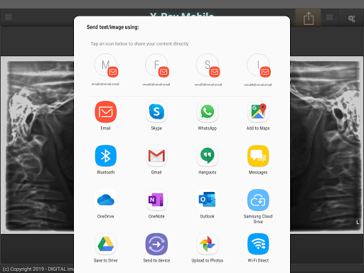 X-Ray Mobile acquire x-ray images directly on your mobile device. X-Ray Mobile can also capture picture from your camera and send them to the connected pc. X-Ray Mobile uses the WiFi to connect to the PC.