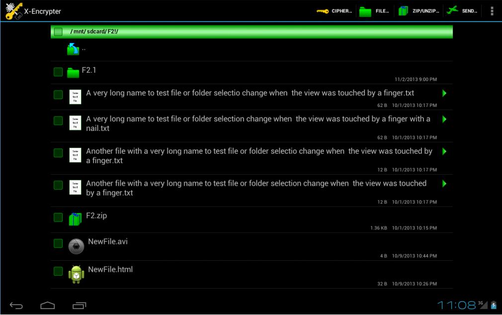 X-Encryptor is organized as a file manager for Android OS. It provides basic operations to manipulate files and folders, such as: