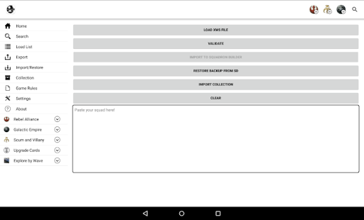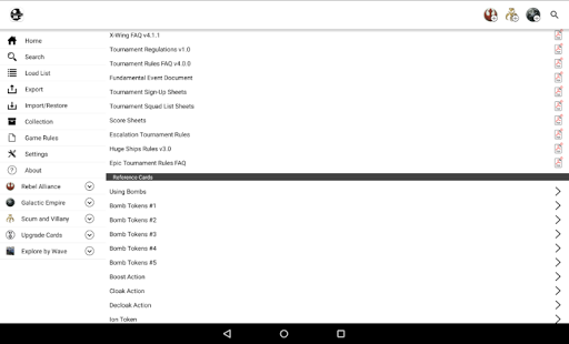 X-Wing Squadron Builder for Android is an app for mobile devices developed with the purpose of serve information to X-Wing’s players in the creation of squads for standard and championship games.