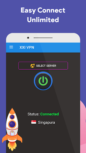 XXI VPN is a super fast application that provides a free VPN Proxy service. Just click the start button, to activate VPN Service and don't need any configuration.