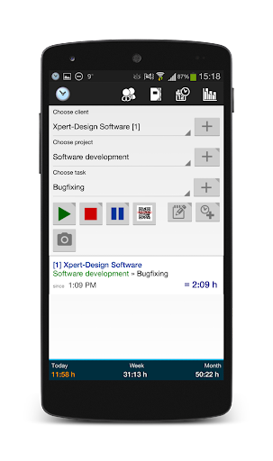 Xpert-Timer can also create and scan barcodes/QR-codes. Create a QR-Code in the project settings, stick it on your machine or file and simply start tracking time by scanning it. Perfect, if you need to switch back and forth between projects.