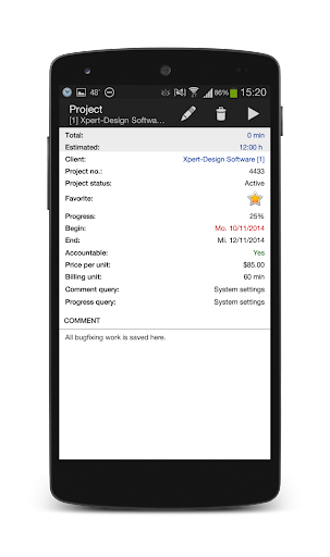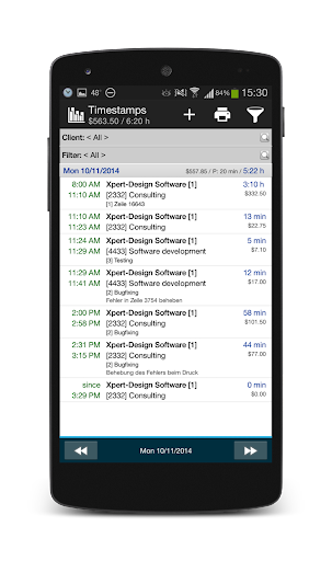 Your tasks, or projects can be linked to a client. You can add comments to your time stamps and have Xpert-Timer calculate the occured costs by setting an hourly rate for the project. This hourly rate may vary for each project.