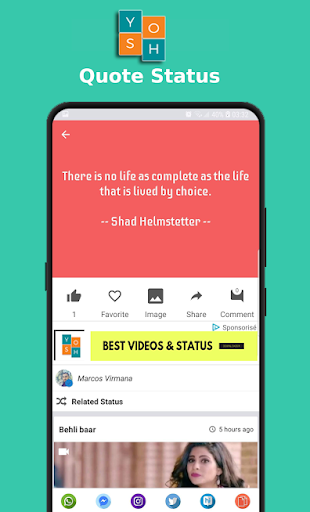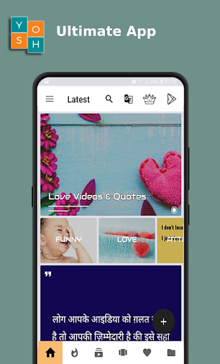 YOSH STATUS is the best free short (30 Second Videos) video/Image/Quotes Status app to watch, download, and share trending videos social media. In YOSH STATUS, Lyrical video songs statuses are also available, You can watch Share and Download Video Status in Indian languages like Hindi, English, Kannada, Islamic, Haryanvi, Bhojpuri, Telugu, Tamil, Marathi, Gujarati, Bengali, Punjabi and Malayalam & Other Languages.