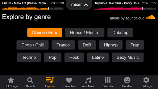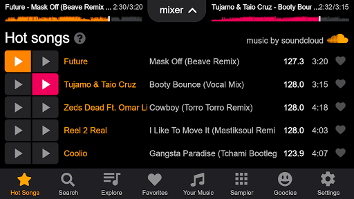 To finish, you don't need to have music on your device, the app is preloaded with great music from SoundCloud, the best music plateform for electronic music lovers.