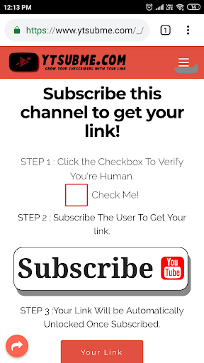 We at MRNIAMSTER developed this page with smaller YouTube channels in mind, As generally, have a small channel doesn't make the audience subscribe you and they just want the link / information which you are referring them to ,due to which they don't care much about your content video and there may be chance they just dislike your videos So we want to help you as a content creator to promote and to improve upon your channel or community to get 100% of your content and get +1 subscribers every time they visit the URL.