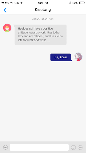 Recruiters can use this app to manage his staffs and can communicate with staffs at the first time. Recruiters can also help staff to correct basic information.