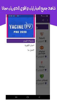 تطبيق Yacine TV Pro - Live 2020 – تطبيق رياضي متخصص في نقل مباريات كرة القدم المحلية ولعالمية، كما يكتب عن جميع أخبار كرة القدم ، ويعرض بث مباشر لجدول المبريات الأفريقية والعربية والأسيوية والاروبية، وذلك على مدار المباريات حيث يعمل التطبيق على تغطية كافة الأحداث التي تشهدها الملاعب كما يتوفر تطبيق لايف كورة على قسم خاص بجدول المبريات الدي يغطي كافة المبريات بث مباشر وبدون تقطيع .