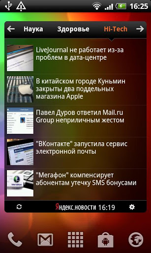 The Yandex.News widget helps you keep up-to-date with the day's main events in Russia, Ukraine, Kazakhstan and Belarus.