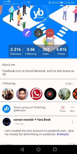Yarabook is a social network website that is founded & developed in INDIA; Yarabook commonly knows as yb (a short form of Yarabook) Indian social network. Yarabook (YB) is a trending social networking site in India for Personal & Professional business use. Yarabook recently added more than 100 new features for users such as; Custom News Feed, Follow System, Business Page, Community & Groups, Job System, Funding System, Profile Match System, Shop & Marketplace, FREE Adverting System, Boost Page & Post System, Albums, Youtube Video Supported, Event System, Blog & Article, Forum & Discussion, Games & Movie system and much more. YB community is a place where you can share your values, cultural values, business goals, attitudes, business values, and interaction worldwide.