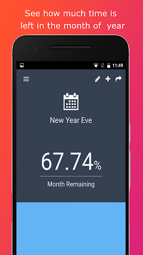 A clean and simple Year Month Day(YMD) Progress app to help you improve your productivity. You can enter your favourite event or occasion through this app and track your event in percentage or days left countdown