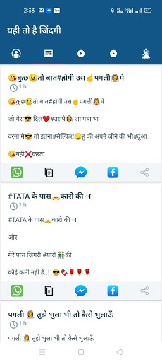 It is a collection of hindi shayaris and status categorized as attitude, love, sad, dard, non veg jokes etc