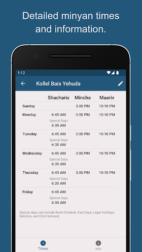 Use YidKit to find a minyan! YidKit's Minyan Locator can show you minyan times, locations, and contact info.