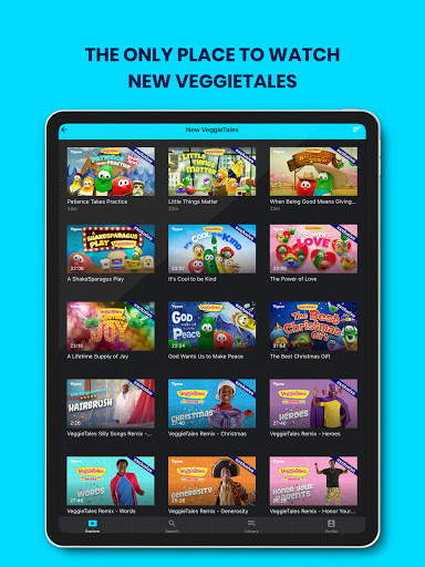 The only place to binge-watch new and Kold VeggieTales! Tune in for a new episode releasing every month through 2022! Plus, enjoy 45 classic episodes and fun remixes.