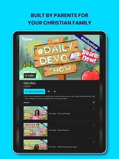 The Yippee app is built by parents, aunts, uncles, and children’s leaders who care about the well-being of our kids. Every show is vetted by parents to make sure it's something we would feel comfortable letting our own kids watch.