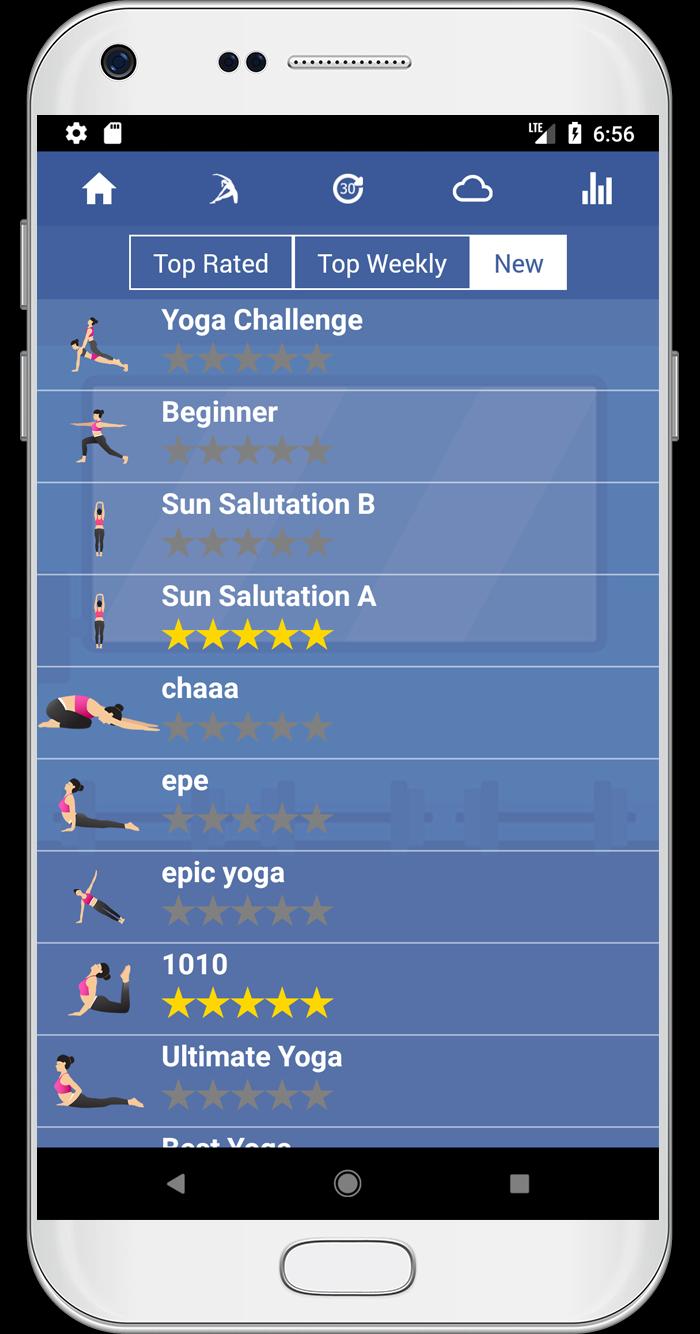 • Browse highest rated All Time / Weekly / Daily yoga workouts.
