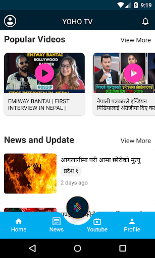 YohoKhabar, Nepal's most watched news portal, available as an app. The app brings to you Live TV, latest news in Nepali , breaking news alerts, national news, international news, local news, sports news, news from politics, crime and religion . YohoKhabar is most-reached and most trusted news source. Download the YohoKhabar app on your Smartphone and watch YohoKhabar news Live and YohoKhabar program videos, Youtube shows from wherever you are, read all the latest news and see the latest pictures.
