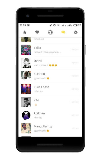 In the application, you can easily communicate with musicians using the built-in simple messenger. You can correspond for comments on a musical work, create joint works, business proposals, or simply ask for professional advice.