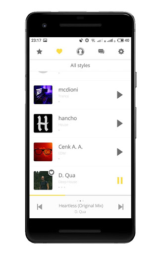 In the evaluation process, all musicians to whom you put " " are automatically listed in your favorite list. In this window you can once again listen to music that you liked. All authors are sorted in the chronological order of their addition to the list.