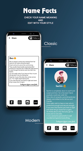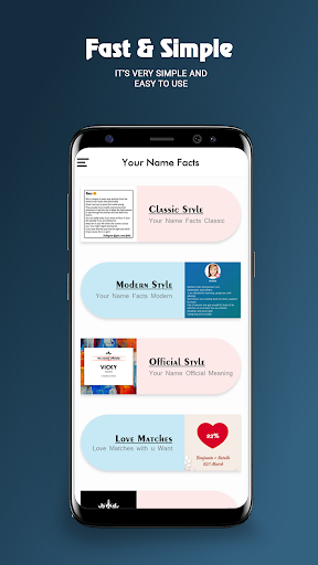 Your Name Facts is a totally free android application. It'll help you to check what is behind your name, what is the Official meaning of your name, what is your family name.
