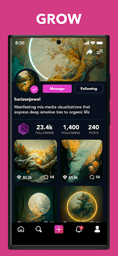 Get Gems (digital currency) from the community instead of traditional likes for your creative works and projects.