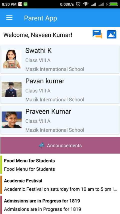 Attendance, Exams, Fee, Home works, Lesson planning, Notifications, Online Feedback etc. are the key features that parents can avail through the app.
