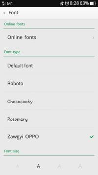 Font Style ထဲဝင္ၿပီး ခုနသြင္းခဲ့တဲ့ Zawgyi OPPO ကိုေရြးပါ။