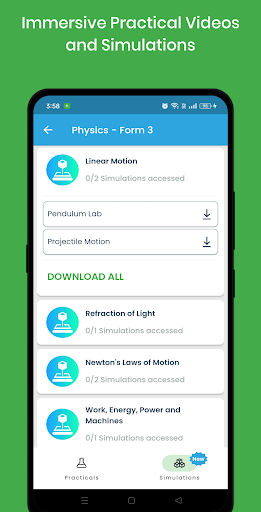 1. Ability to revise content already covered in class and learn new material for various topics ahead of the student’s current class through comprehensive video lessons based on the Kenyan 8-4-4 curriculum and approved by KICD. The subjects covered are; Mathematics, English, Kiswahili, Biology, Physics, Chemistry, Geography, CRE, IRE, History, Agriculture, Home Science, French, Computer Studies & Business Studies.
