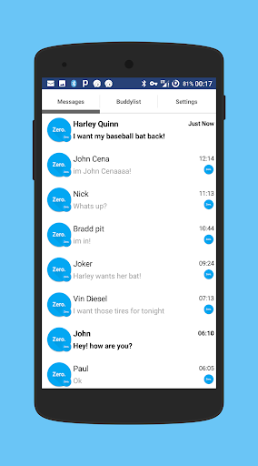 Zero Dot adds new features to the standard free 0 facebook service and it works without any data or wifi connection! That means that you get notifications which include the other user's name, the time the message was sent and of course the message itself along with sound notifications when new messages arrive, immediately without having to take your phone out of your pocket to check for any possibly new messages every once in a while.