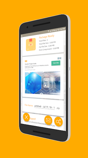 Zip and Share is a smart, compact and robust app, that can zip any files and share that zip with almost any app. This software pulls all files of known types from your internal and external storage on unified app panel to provide a seamless user experience. This software is also smart enough to receive any files shared from any application for compression.