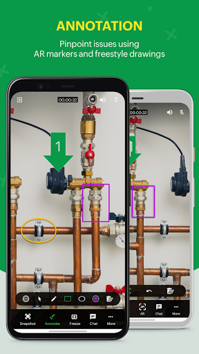 Add AR annotations to the video stream for extra virtual information. Easily add arrows, or even point to the parts that need technical aid.