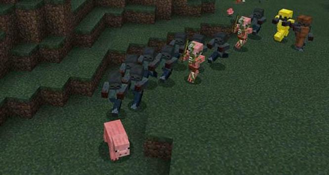 Anything alive is a target to zombies. This includes both players and animals such as pigs and chickens. Zombies are no longer affected by the sunlight and this means that they can grow into massive numbers quickly.