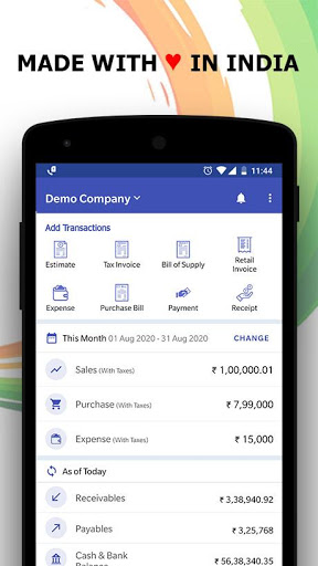 A GST compatible Billing & Accounting App that lets a business owner keep complete control of his business accounting, stock/inventory, Invoicing, Billing, Estimates, Expenses, GST tax & more. It keeps you in full control of the business in a very simple & easy way.