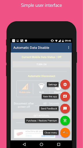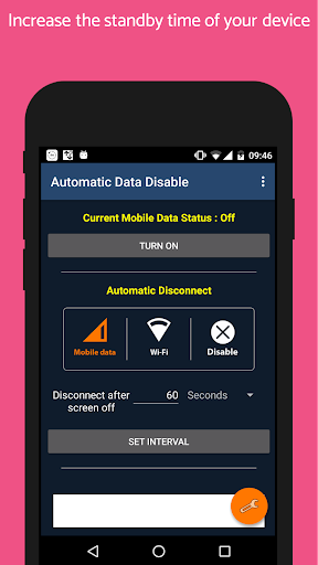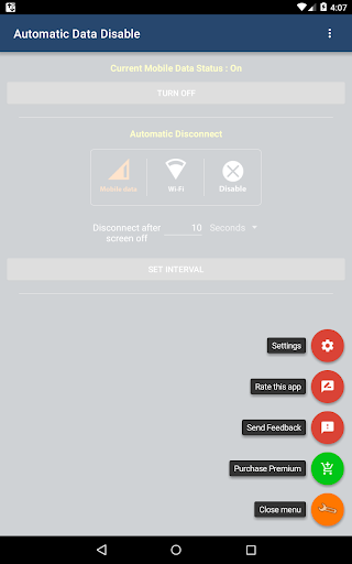 Set time interval to 10 seconds. Lock the phone. 10 seconds later, mobile data internet connection will be turn off to prevent carrier charges and reduce battery drain.