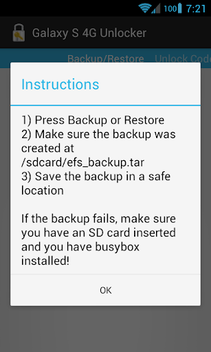 The app writes your unlock code (/sdcard/unlock_code.txt) and backups (/sdcard/efs_backup.tar) to the SD card