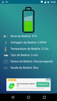 Utilizando este aplicativo é possível verificar o nível de carga de bateria do seu celular. Além disso, é possível verificar também:
