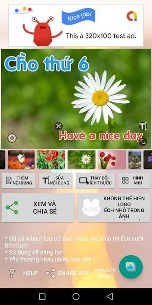 Có thể thêm nhiều chữ, nhiều dòng, sử dụng khung ảnh tự động, có thể làm mờ đi theo ảnh, có vô số màu sắc cho bạn lựa chọn