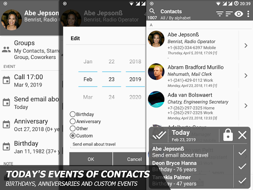 — creating and displaying today's contact events (birthdays, anniversaries, etc.)