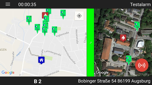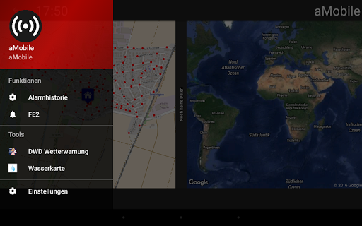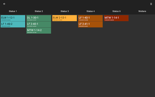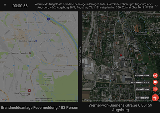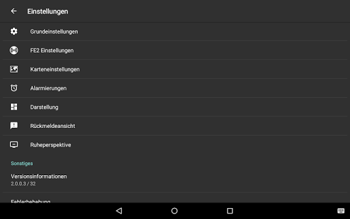 Apps from Fireboard "Einsatzbibliothek" and "Atemschutzüberwachung", "Wasserkarte.info-App" and the "DWD-Wetter-App" can be opened directly from the app menu