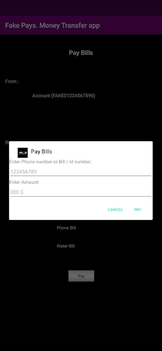 By default we will give you fake 1000000 $ (one million dollars) to play prank with friends you can transfer them and can pay utility bills etc. But remember this is a fake app and no real online or any type or transactions can be done through this app.