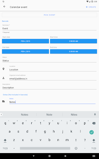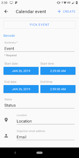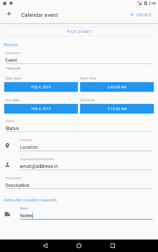 • PICK CALENDAR EVENT to create calendar event barcode.